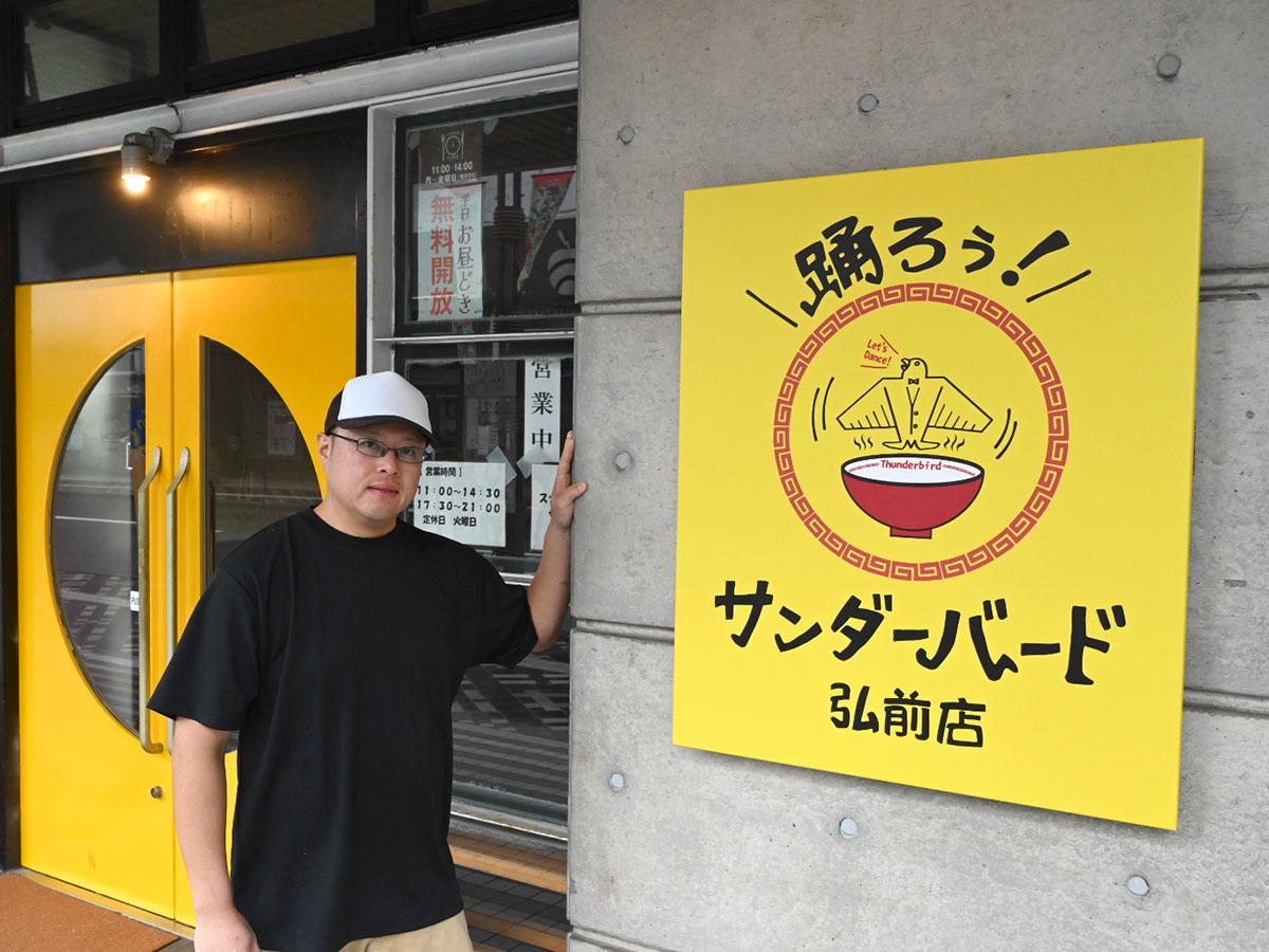 ラーメン店「踊ろう ! サンダーバード 弘前店」(弘前市土手町)が11月1日、立体駐車場「したどてスカイパーク」1階にオープンした。