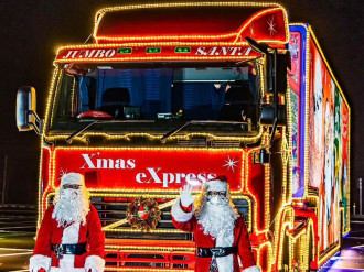 クリスマスカラーのデコレーショントラック「サンタ号」が登場するイベント「ベリークリスマス2025」が12月5日、「イオンタウン弘前樋の口」(弘前市樋の口2)で開催される。