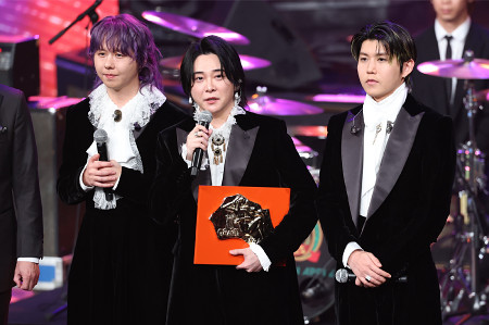 第67回日本レコード大賞は30日、3人組ロックバンド、Mrs. GREEN APPLEの「ダーリン」に決まった。2023年の「ケセラセラ」、24年の「ライラック」に続き、3年連続で大賞を受賞した=都内 【時事通信社】