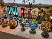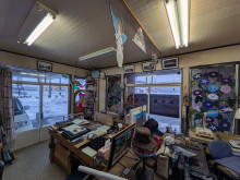 ステンドグラス製造者で店主の内本保夫さんが79歳を迎え、終活のために開いた同ギャラリー。工房の2階を改装。立体作品と平面作品を展示する部屋に分け、仕事の合間に製作した約150点のステンドグラス作品を販売する。物置に置いていた作品を少しでも見てもらえるようにした」と内本さん。平面作品を展示する部屋は改装が続く。