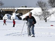スノーアート「冬の田んぼアート」が1月23日、道の駅いなかだて「弥生の里」(田舎館村高樋)で始まった。