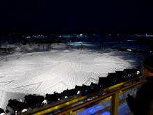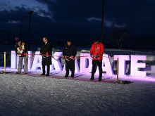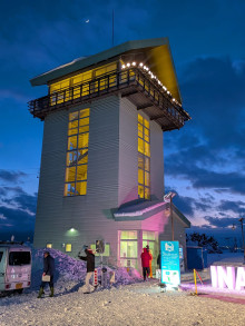 サイモンさんは17時から行われたオープニングセレモニー後もスノーアート作成を継続。「イッツオーケー」代表の田澤謙吾さんは「サイモンさんの作品を見るまたとない機会。展望台から見るメンテナンスの過程やライトアップによる光と影を見に来てほしい」と話す。