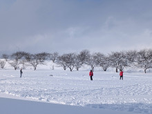 今年のテーマはなく、サイモンさんの指示通りにスノーアートを作成した。縦70メートル、横160メートルの広さの会場からはみ出す大きさの2つの円を描き、足跡の陰影(シェード)で幾何学模様を作り込んだ。同日10時から制作は始まり、16時ころには完成。サイモンさんは5万歩、参加した7人の「イッツオーケー」メンバーも2万歩近く歩いた。