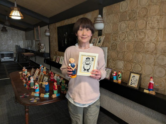 青森県内を中心に活動する作家・成田弥生さんの個展「成田弥生の小さな人形と木版画展」が現在、弘前市坂本町の名曲喫茶「名曲&珈琲ひまわり」2階で開催されている。