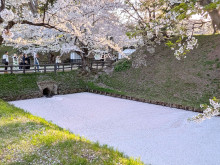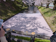 弘前公園中央高校口付近の道路沿いに現在、パイロンが設置され、弘前市観光課が自転車などの安全運転を呼びかけている。