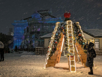 弘前公園近くの弘前市民中央広場で12月12日、クリスマスイベント「りんごの約束クリスマスの想(おも)い出」が開催された。