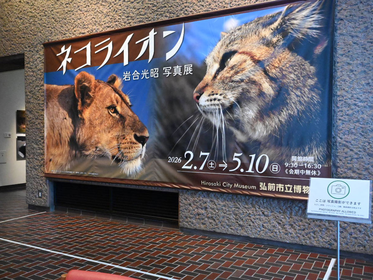 企画展「ネコライオン -岩合光昭写真展-」が現在、弘前市立博物館(弘前市下白銀町)で開催されている。
