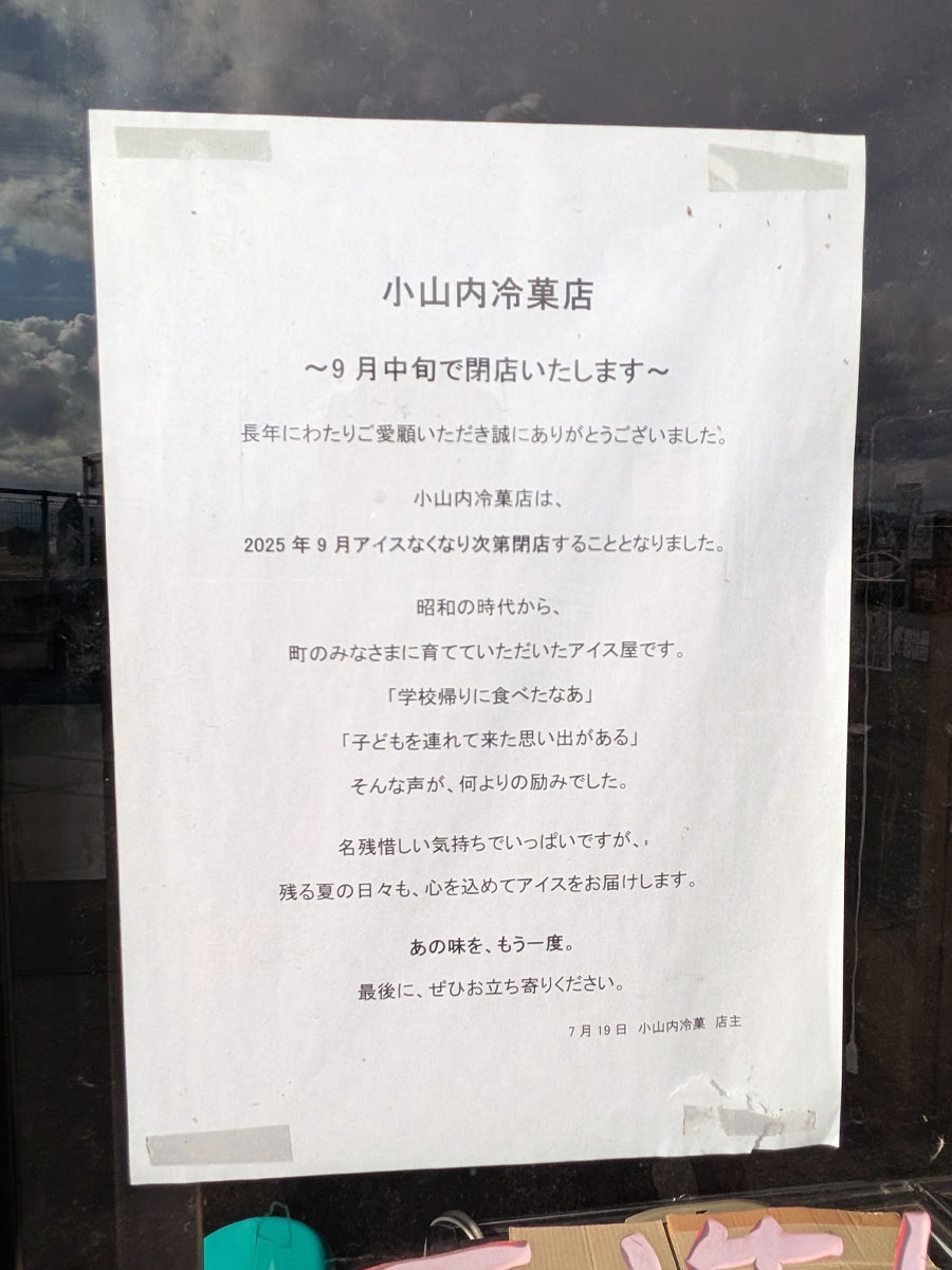 弘前の老舗アイス店「小山内(おさない)冷菓店」(弘前市駒越)が9月30日、閉店した。