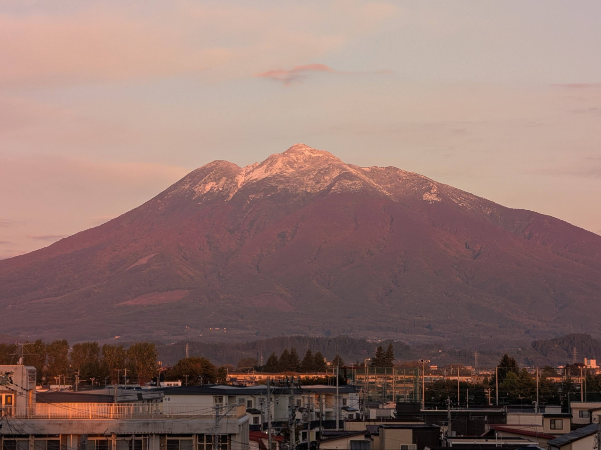 朝日で赤く染まる岩木山