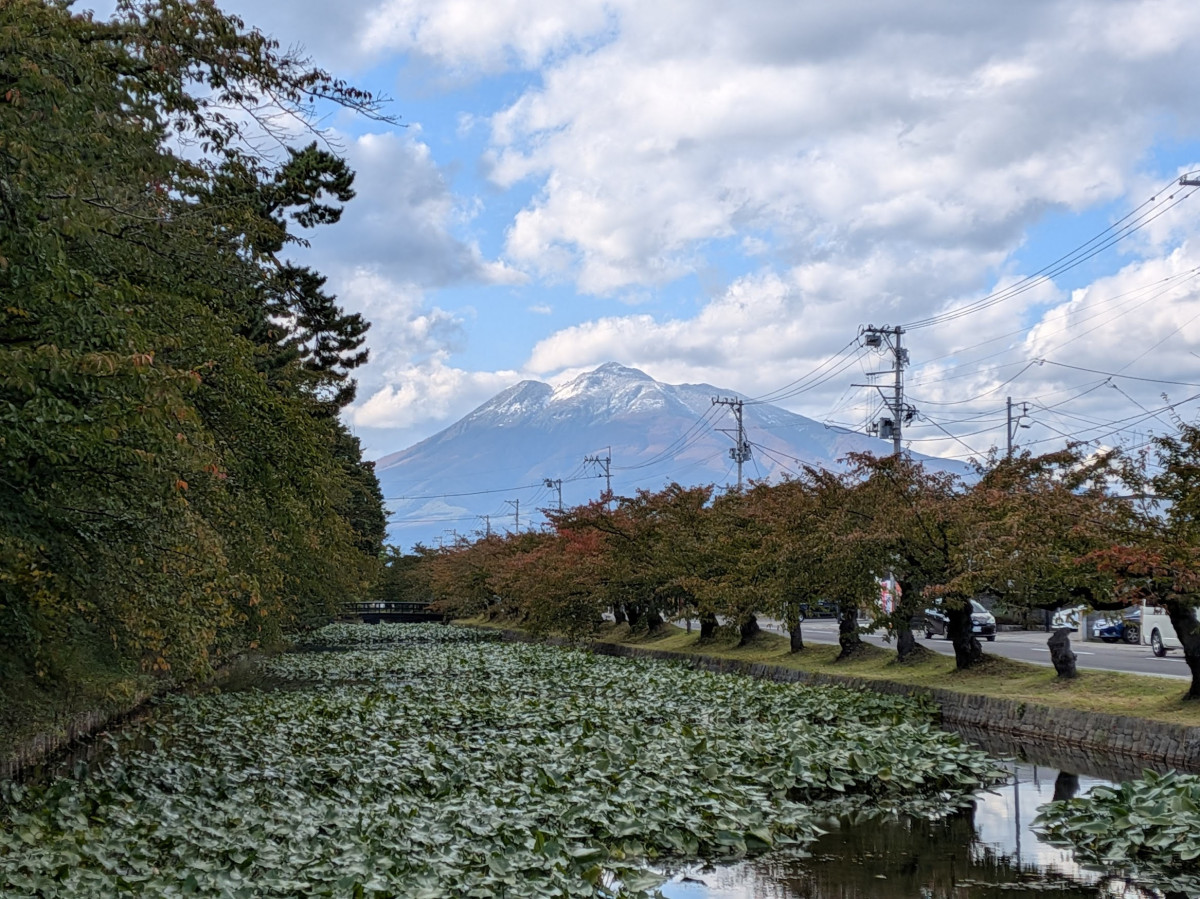 青森・弘前にある岩木山が10月25日、白、赤、緑の3色に彩られた。