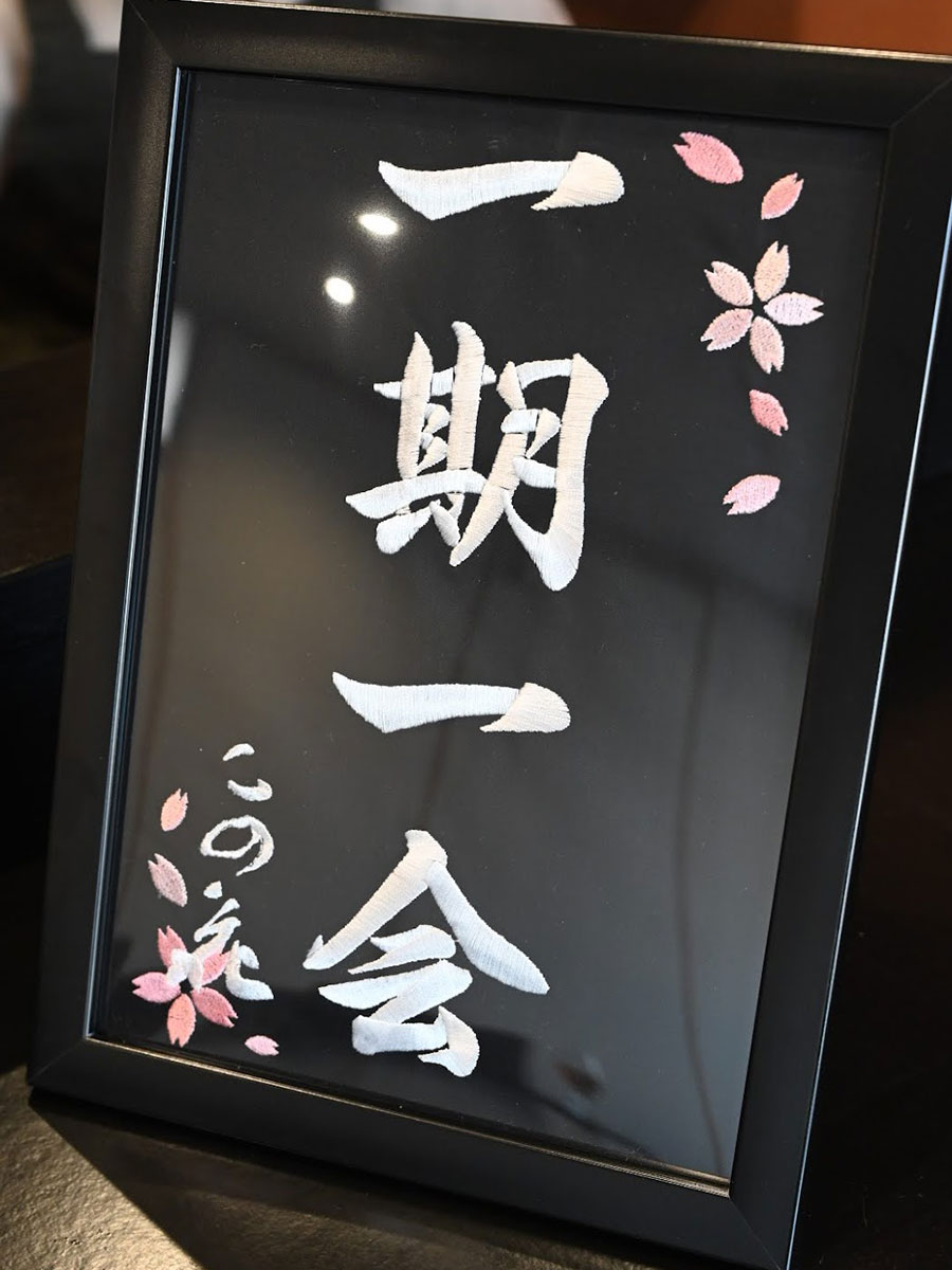 「一期一会」と描かれた刺しゅう