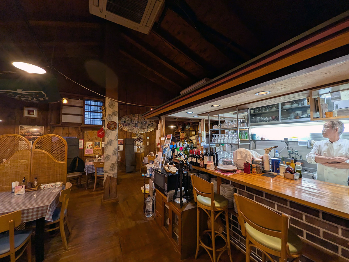 屋根付きの厨房は移転の際に増設した。冬は厨房からの熱で店内が暖かくなるという