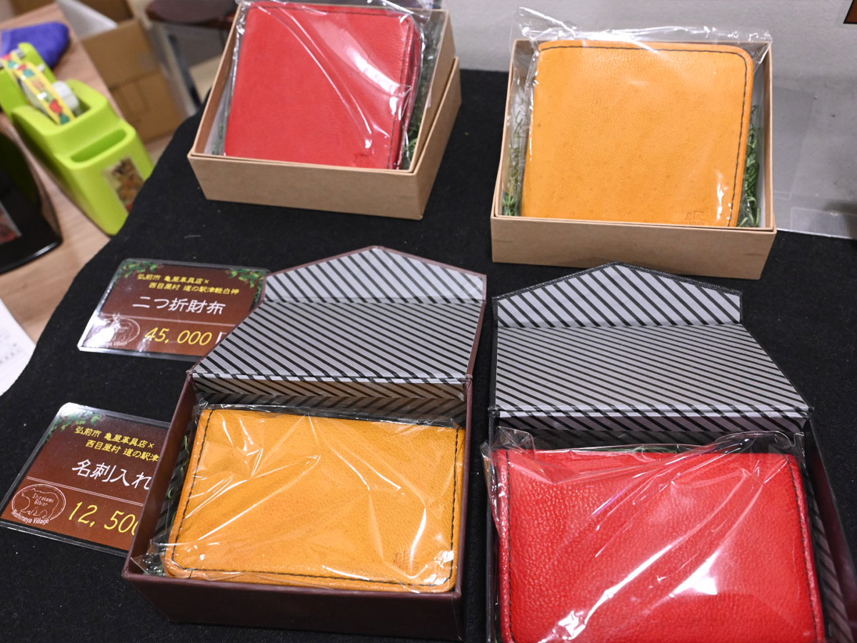 青森県産リンゴの搾りかすで作ったシート素材「Adam(アダム)」使用雑貨の実演販売を11月8日、総合食品市場「虹のマート」(弘前市駅前町)で販売する。