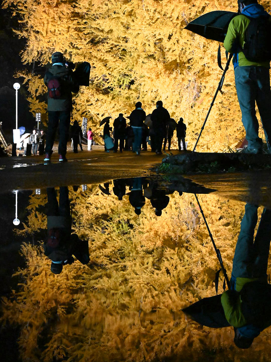 青森・深浦の国指定天然記念物「北金ケ沢のイチョウ」で現在、ライトアップが行われている。