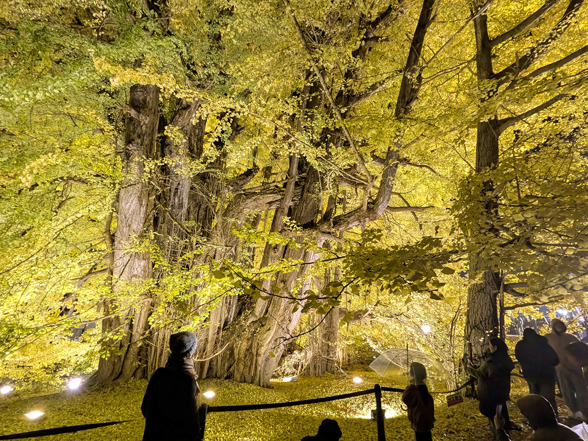 青森・深浦の国指定天然記念物「北金ケ沢のイチョウ」で現在、ライトアップが行われている。