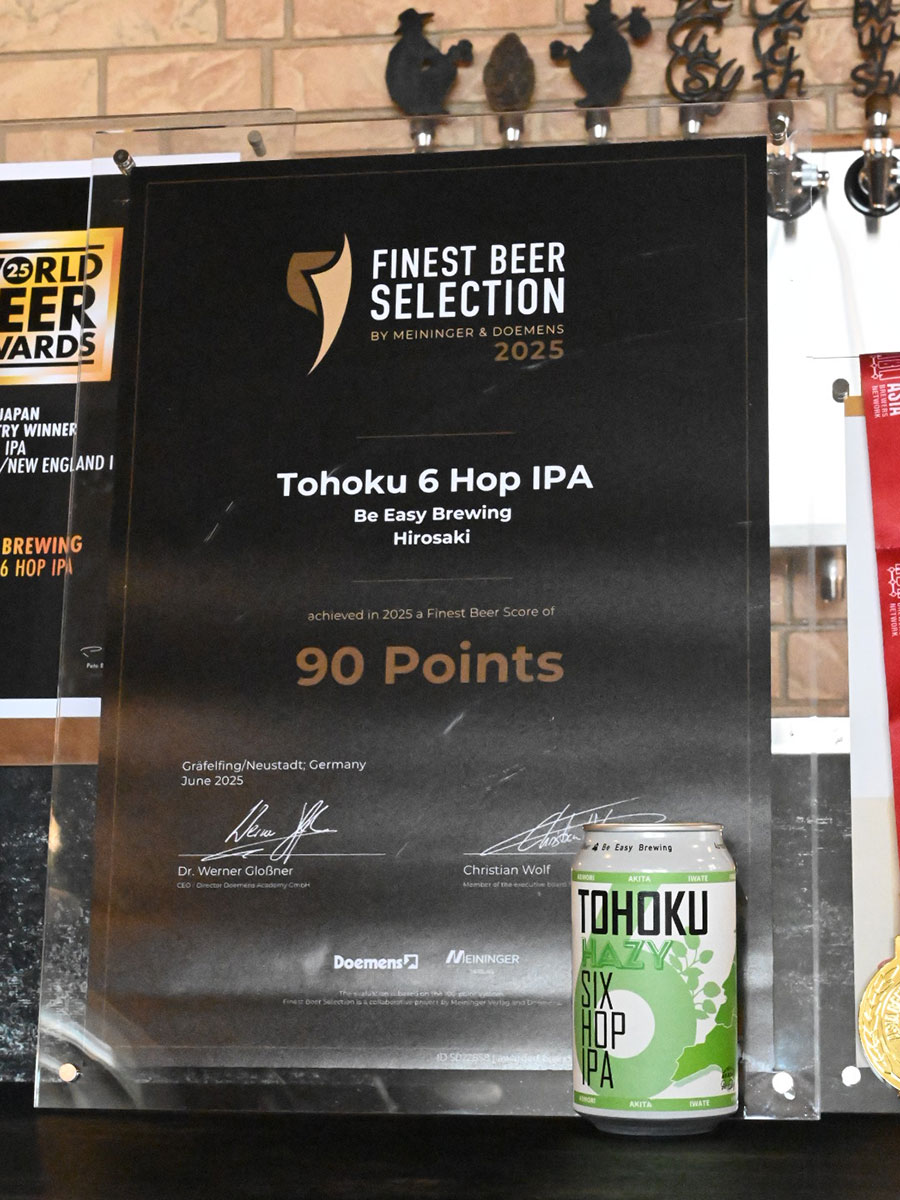 「ファイネスト・ビア・セレクション」で90点を獲得した「Tohoku 6 Hop IPA」
