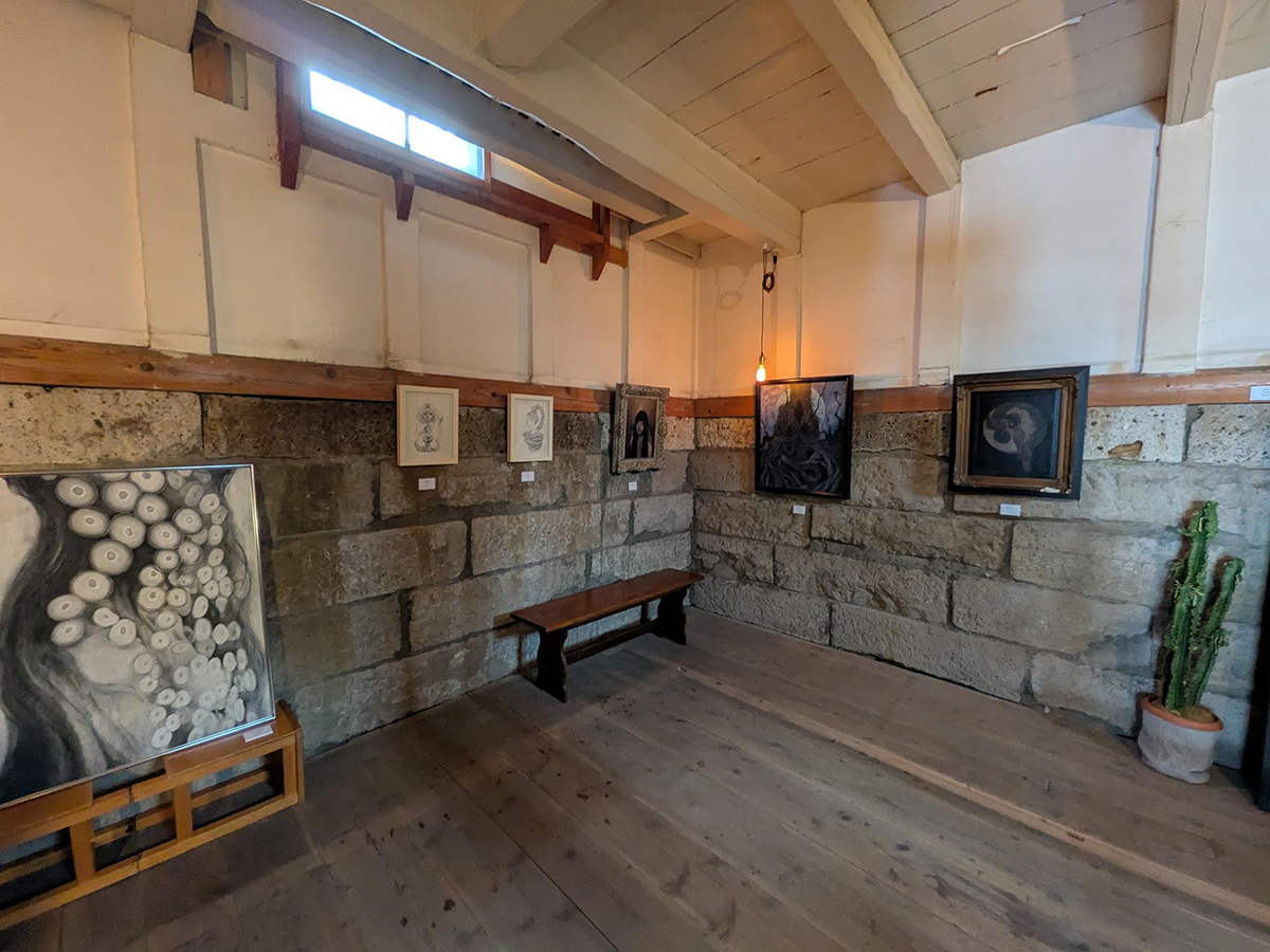 1階は九蛇さんの油彩画と原子麻美さんの日本画を飾る