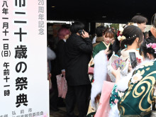 紋付袴とスーツで決めた新成人たち