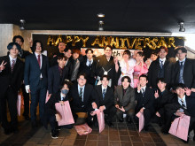 整備士として立派な大人になりたいと宣言した高橋東陽さん(右下)。自分の名前入りの扇子を自前した