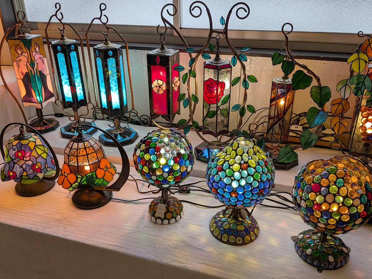 ステンドグラスのランプ作品