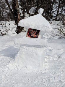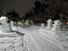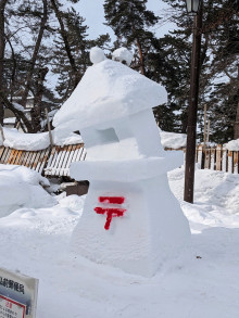 「弘前城雪燈籠(どうろう)まつり」会場内にある雪灯ろうが現在、「傾いている」と来場者の間で注目を集めている。