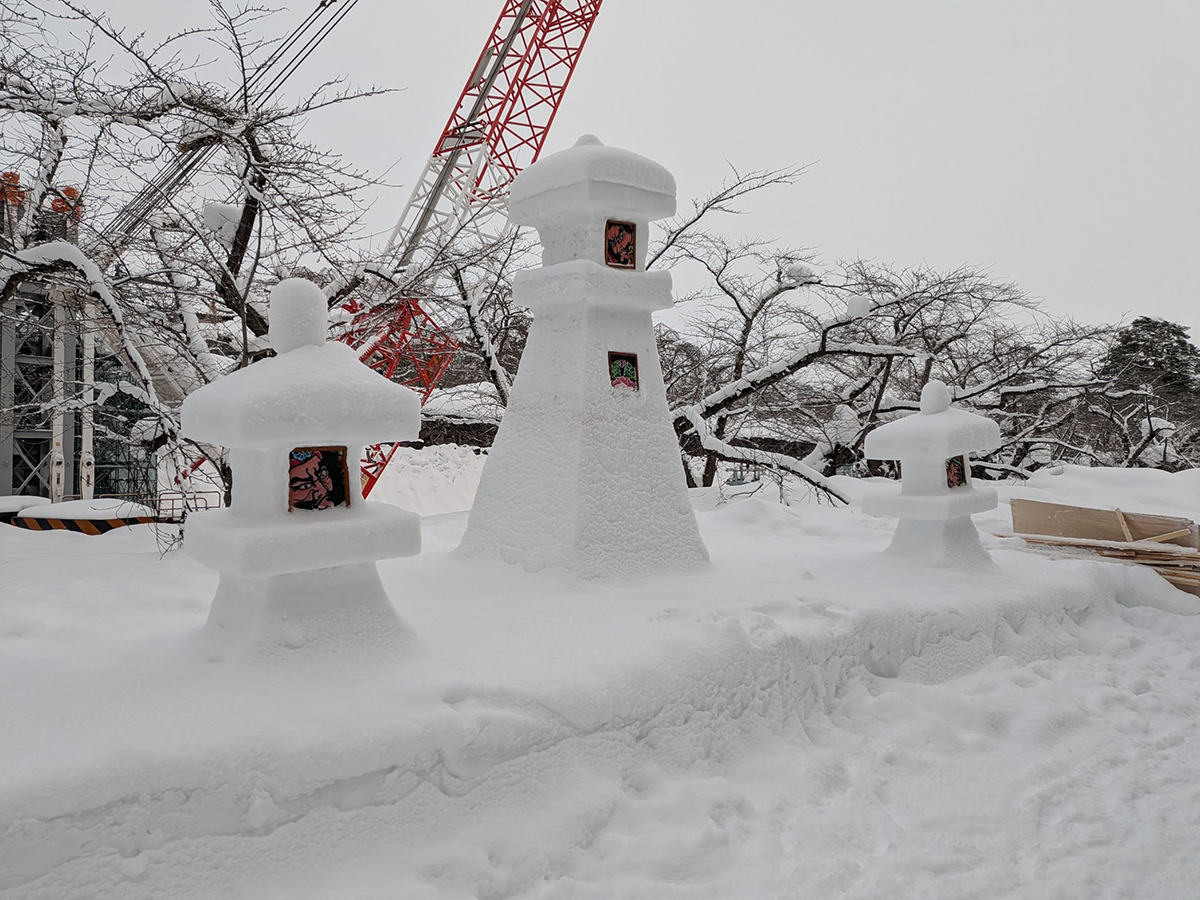 「弘前城雪燈籠(どうろう)まつり」会場内にある雪灯ろうが現在、「傾いている」と来場者の間で注目を集めている。
