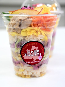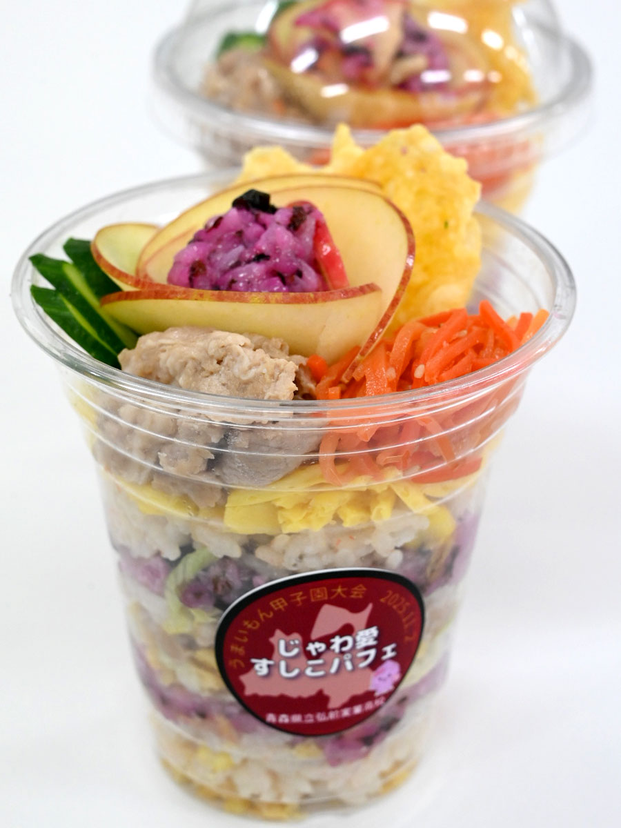 弘前実業高校3年生の生徒3人が開発した「じゃわ愛(めぐ)すしこパフェ」が2月14日・15日、青森県内のスーパーマーケットチェーン「ユニバース」で販売される。