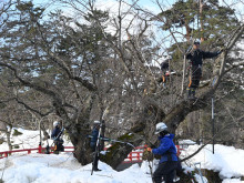 弘前公園(弘前市下白銀町)で2月18日、サクラの剪定(せんてい)作業が始まった。