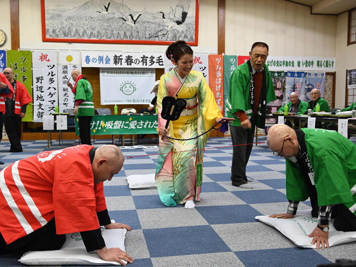 「ツル多はげます会」の春の例会「新春の有多毛(うたげ=宴)」が2月22日、山田温泉旅館(鶴田町鶴田小泉)で開催された。