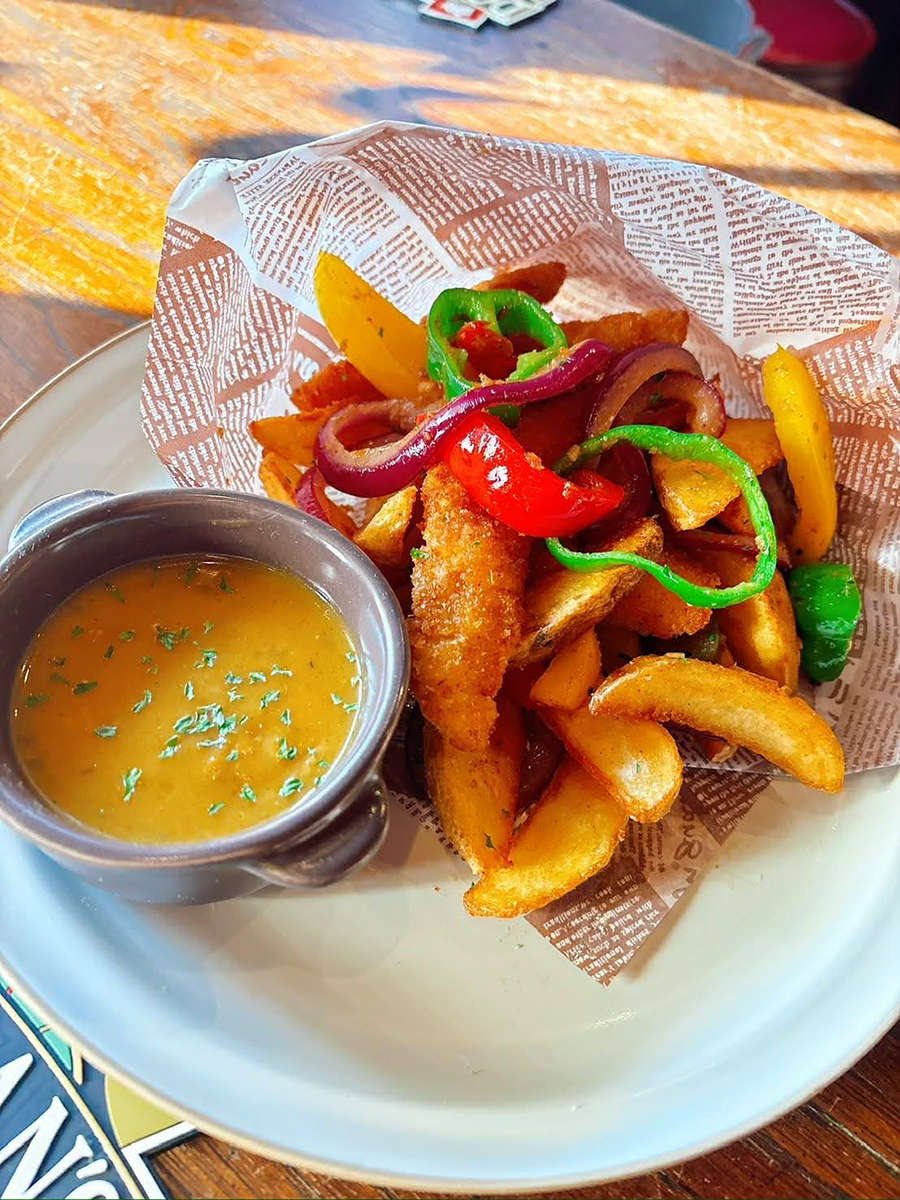 アイルランド発祥のファストフード。カレーソースにつけて食べる。アイルランドの中華料理店で作られたもので、成田さんがアイルランド人から教えられたことがきっかけでメニュー化した。価格は935円