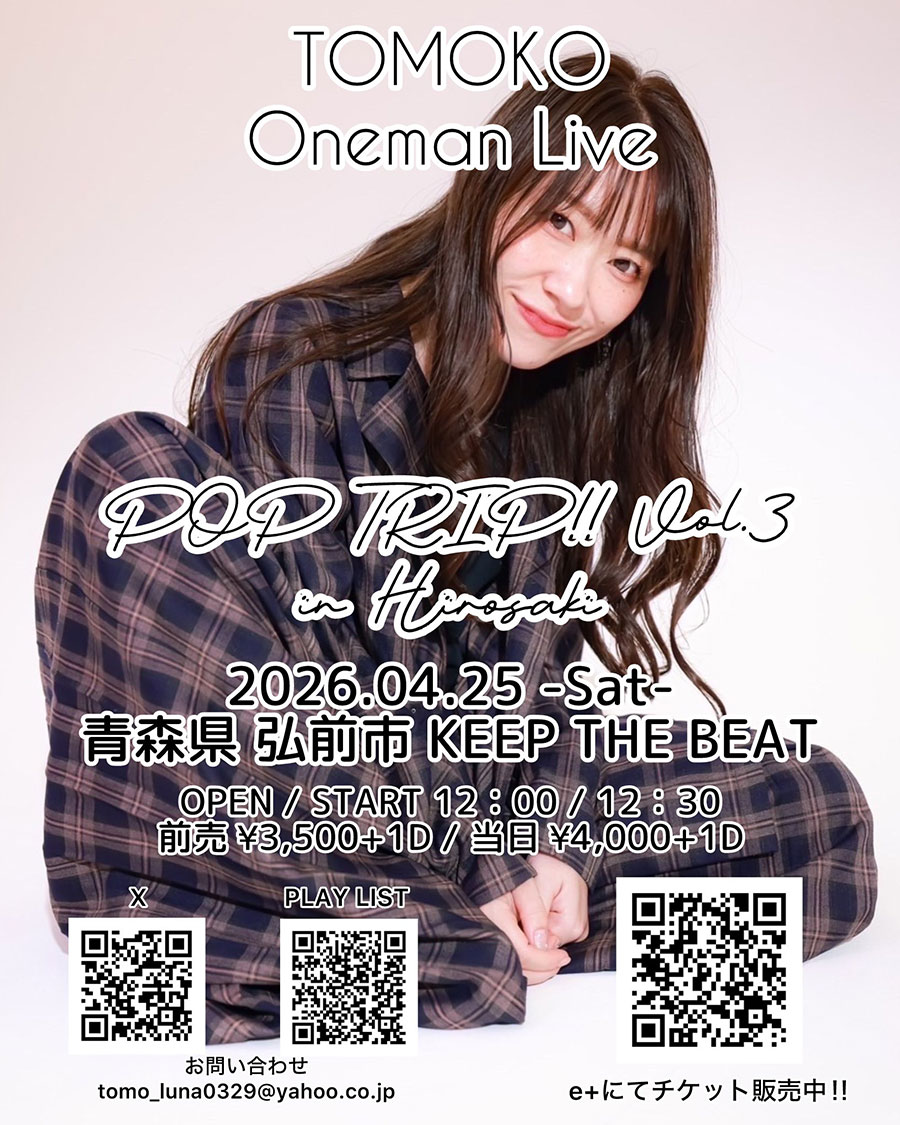シンガー・ソングライターの智子さんのワンマンライブが4月25日、ライブハウス「KEEP THE BEAT(キープザビート)」(弘前市土手町)で開催される。