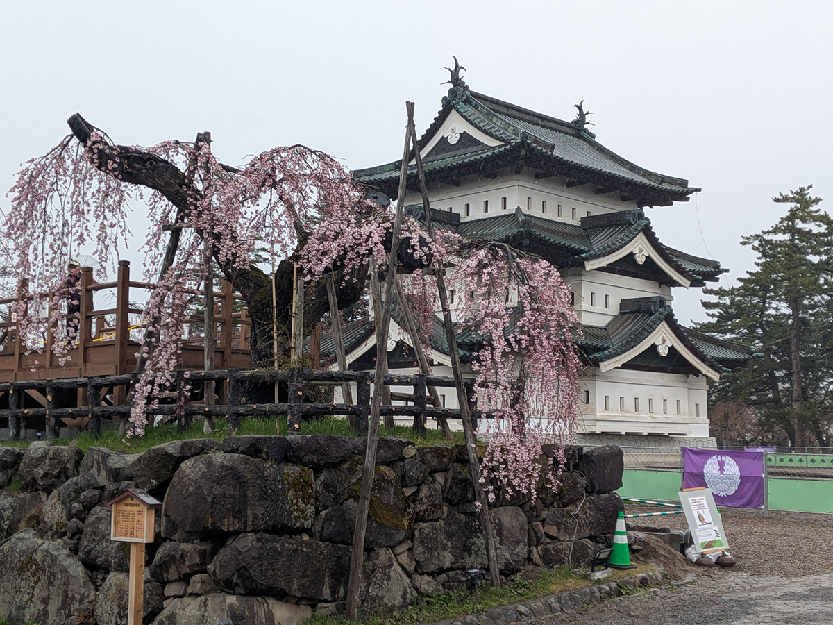 4月7日に開花した弘前公園本丸の弘前枝垂れ