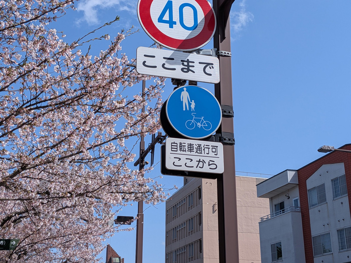 弘前公園中央高校口付近の道路沿いに現在、パイロンが設置され、弘前市観光課が自転車などの安全運転を呼びかけている。
