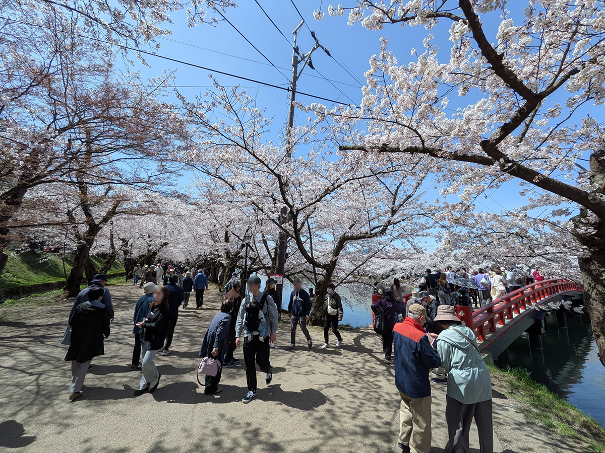 弘前公園(弘前市下白銀町)が4月17日、園内に咲くソメイヨシノの満開宣言を行った。