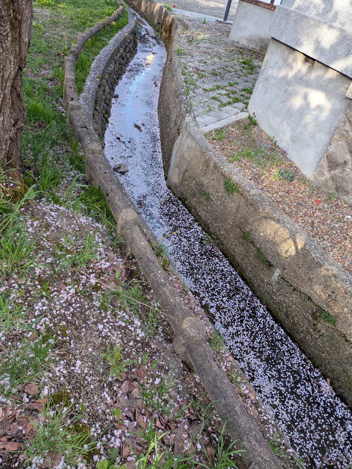 用水路に落ちたサクラの花びら