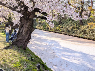 弘前公園中央高校口付近の道路沿いに現在、パイロンが設置され、弘前市観光課が自転車などの安全運転を呼びかけている。