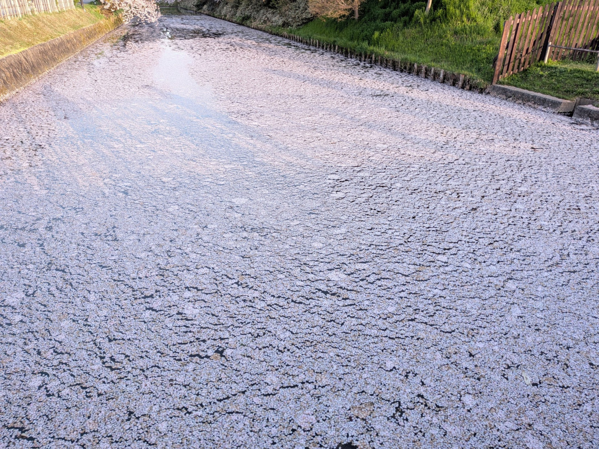 散ったサクラの花びらが水面に浮かぶ「花いかだ」が現在、弘前公園で見頃を迎えている。