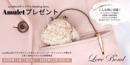 期間中ビジュピコ 青森店にて、LoveBondのリングをエンゲージ・マリッジ問わず2本ご成約いただいたお客様にLoveBondオリジナルWedding items【Amulet(アミュレット)】を1点プレゼントいたします。