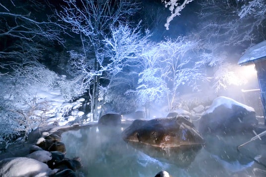 奥入瀬(おいらせ)渓流沿いに建つ唯一のリゾートホテル「奥入瀬渓流ホテル by 星野リゾート」では、2026年1月1日~2月28日の火・水曜日限定で豪雪地・青森の秘境温泉で、大自然の静寂に包まれる「冬の絶景雪見露天」を今年も開催いたします。当プログラムでは、「八重九重(やえここのえ)の湯」を、1日1組限定の貸切で楽しめます。雪が降り積もる静寂の森が幻想的にライトアップされる中で湯浴みを楽しみ、湯上りには特等席でドリンクを満喫できるプログラムです。