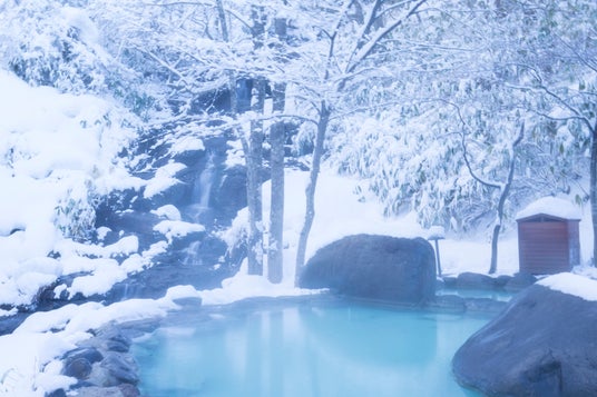 白く豊かな湯の花が広がる湯に身を沈めれば、そこは風の音や野鳥のさえずりだけが響き渡る、静寂の世界。自分だけの湯船に身を委ね、滝と白銀の森に雪がしんしんと降り積もる幻想的な景色を味わいながら、時間を忘れて心ゆくまで湯浴みを存分に楽しめます。