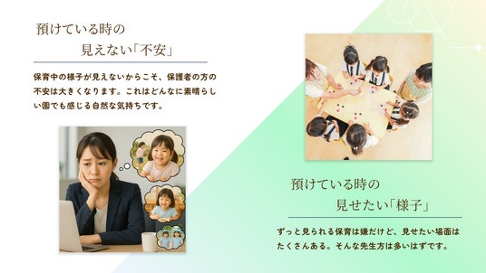 、園での「見えない時間」に子どもがどのように成長し、友達と関わっているのかを知りたい。これは、多くの働く親が抱える切実な願いです。