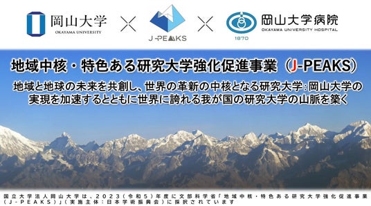 - 岡山大学 文部科学省「地域中核・特色ある研究大学強化促進事業(J-PEAKS)」に採択~地域と地球の未来を共創し、世界の革新の中核となる研究大学:岡山大学の実現を加速とともに世界に誇れる我が国の研究大学の山脈を築く~