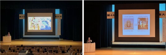 スクリーンに映し出される大間の風景やキャラクターを食い入るように見つめる子どもたち。アニメの上映後には、大間町で行われる天妃様行列に登場する神様も登場し、会場は盛り上がりました。参加した子どもたちからは、天妃様が台湾から来たという事実に驚く声や、地元の伝統を大切にしていきたいという頼もしい決意が聞かれ、会場は温かな拍手に包まれました。