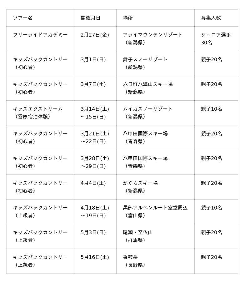 ※2月27日「フリーライドアカデミー」はジュニア選手のみ
