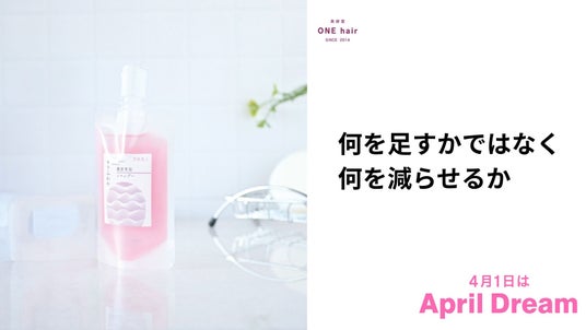 当社は、4月1日を夢を発信する日にしようとするApril Dreamに賛同しています。このプレスリリースは「美容室 ONE hair」の夢です。