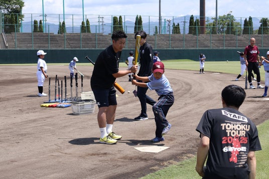 株式会社楽天野球団(本社:宮城県仙台市宮城野区、代表取締役社長:森井 誠之)は、野球やスポーツを通じて、子どもたちの夢を育み、東北の皆さまに元気と感動を届ける活動『TOHOKU SMILE ACTION』の一環として、楽天イーグルスの現役選手やアンバサダー、アカデミーコーチが東北6県を訪問する「学校訪問 Supported by 株式会社オープンスタイルズ」、「野球教室 Supported by 株式会社オープンスタイルズ」や「未来塾」、東北で野球を頑張る子どもたちを東北6県の試合に招待する「ベースボールキッズ招待 Supported by タカカツグループ」を実施することとなりましたので、お知らせいたします。